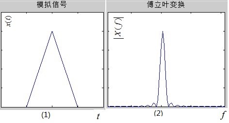 首先来说图(1)和图(2),对于一个模拟信号,如图(1)所示,要分析它的频率成分,必须变换到频域,这是通过傅立叶变换即FT(Fourier Transform)得到的,于是有了模拟信号的频谱,如图(2)